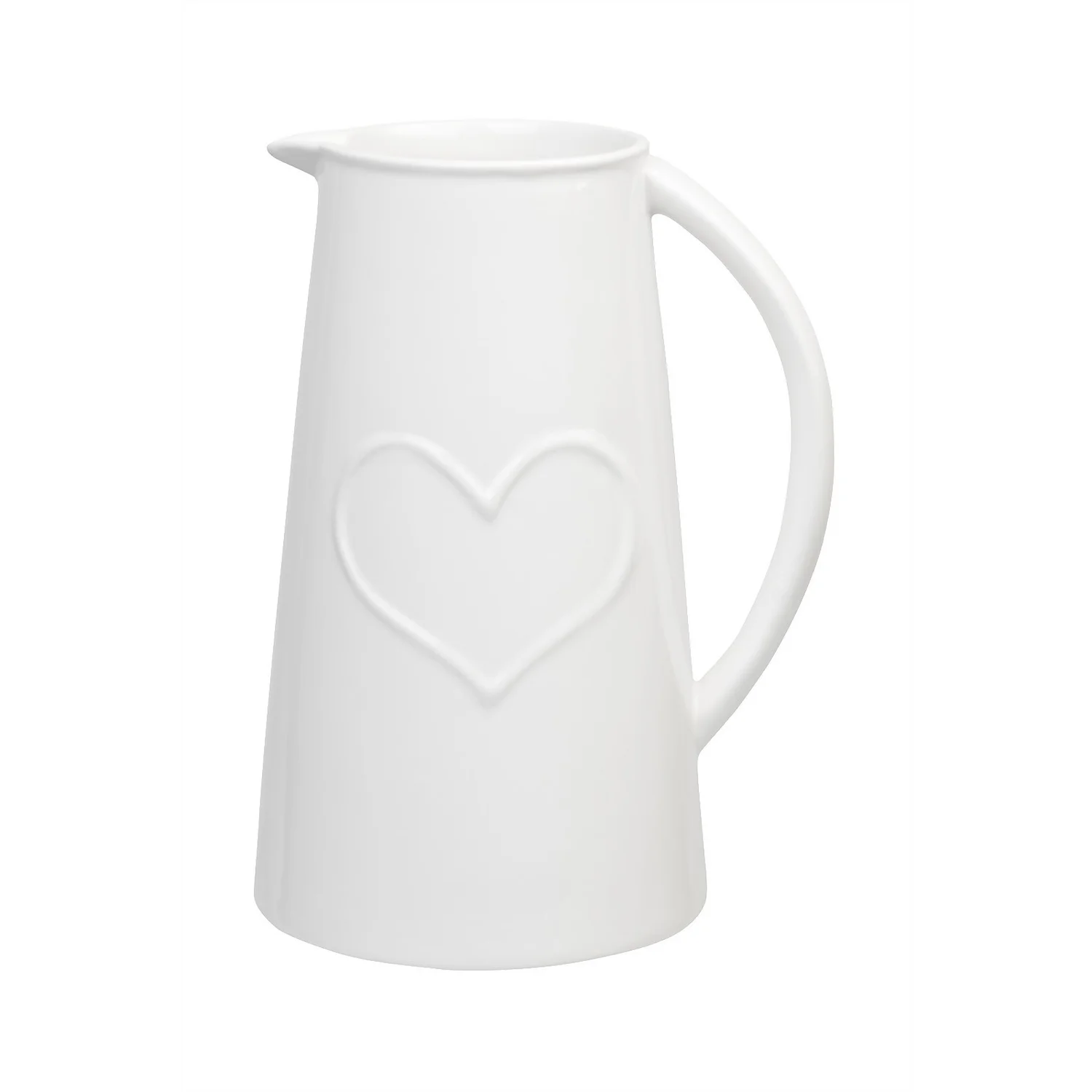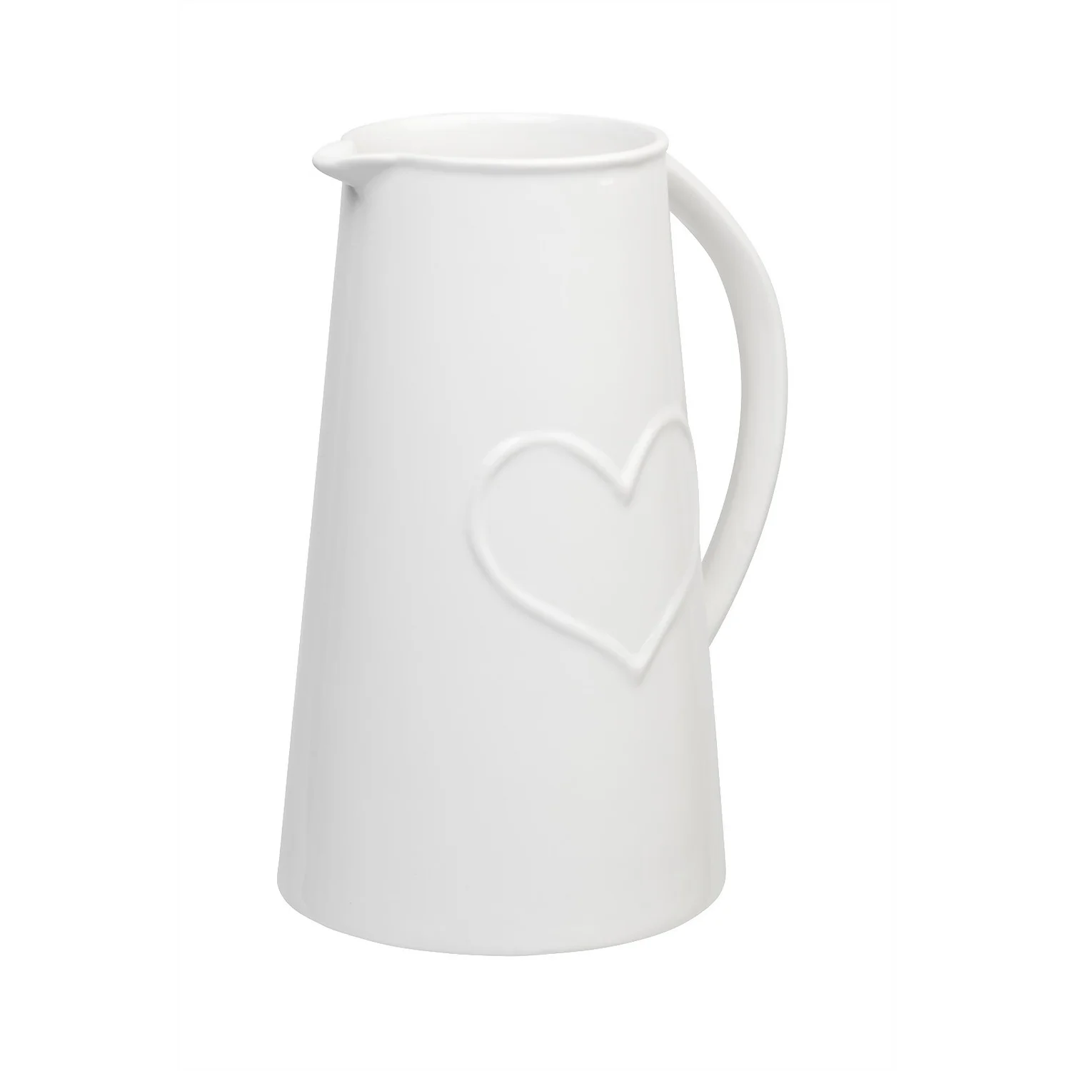 Delighful jug made in ceramic with heart detail and elegant handle.