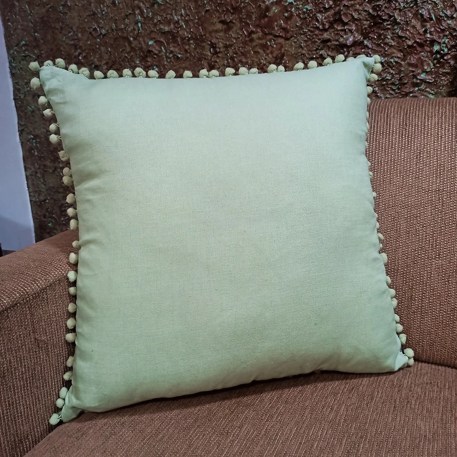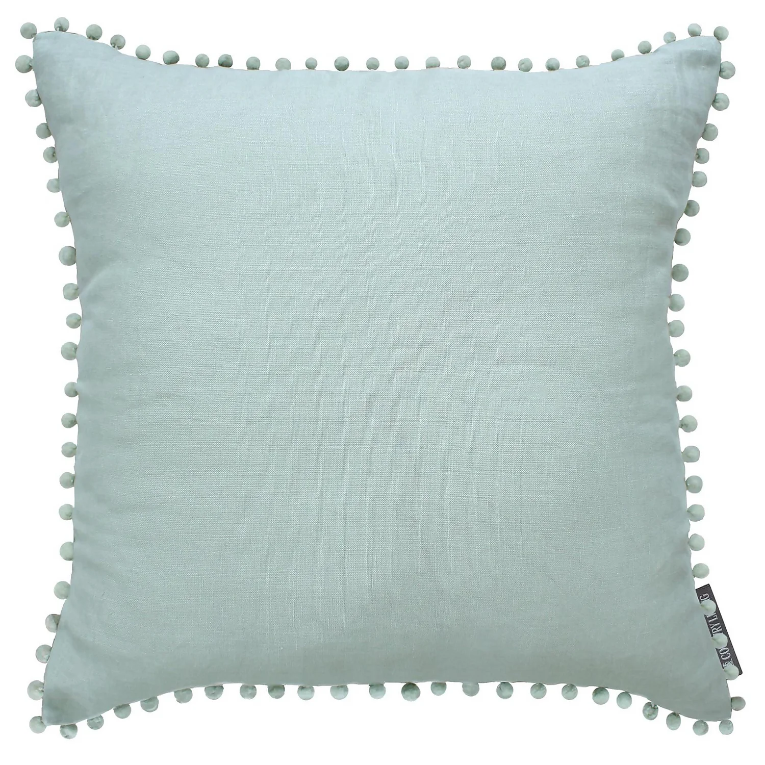 100% pure linen cushion with classic small pom pom trim detail