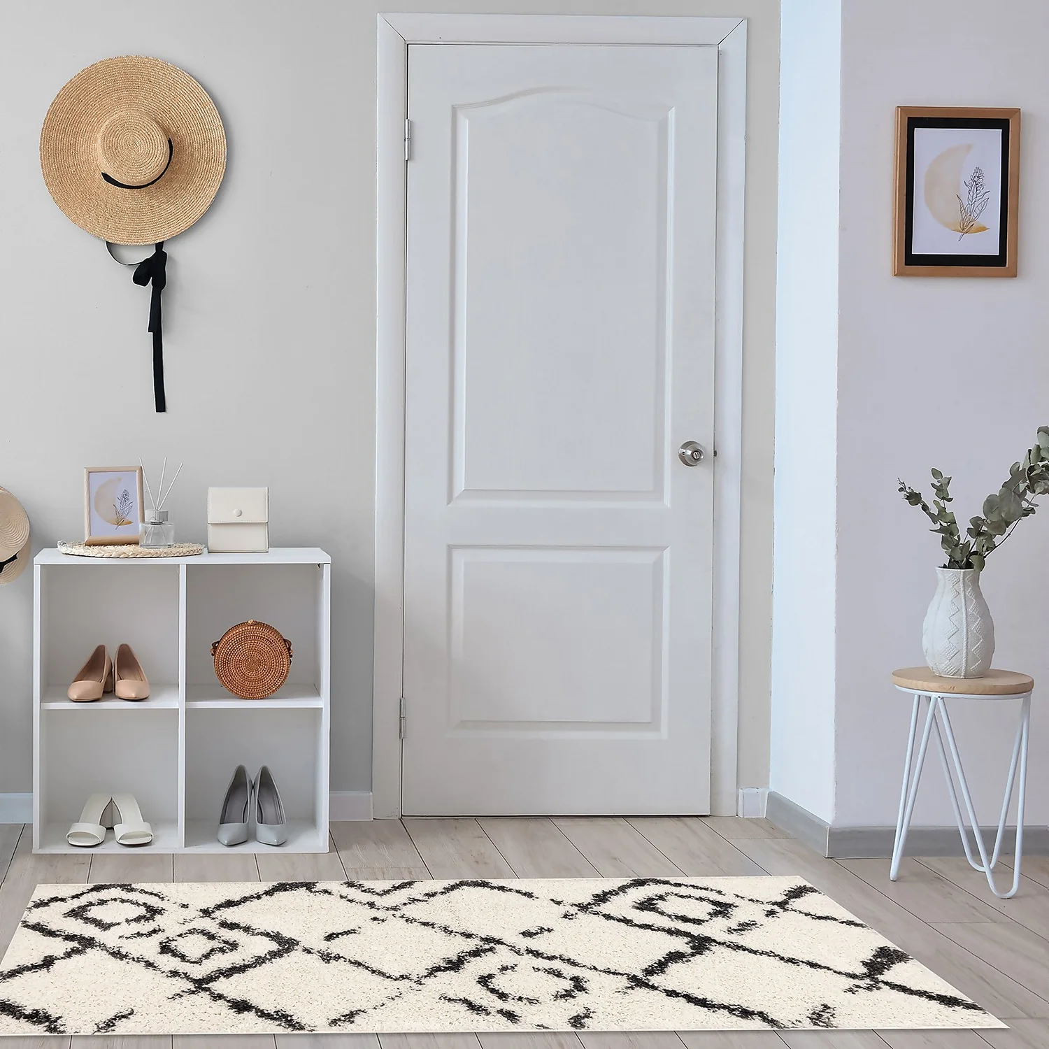 Deluxe Berber Shaggy Runner – White & Black – 180x67cm