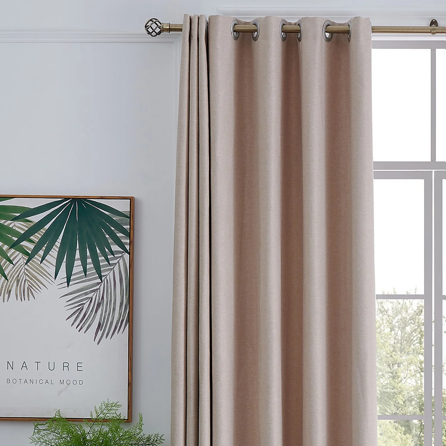 Complete curtain pole set with cage finial. Pole length is 1.1m to 3m. Suitable for lightweight curtains. Metal rods and finials.