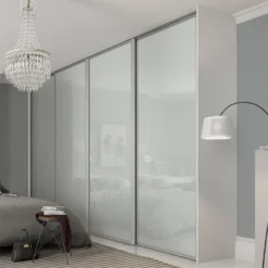 Ellipse Sliding Wardrobe Door 4 Panel Arctic White Glass With Aluminium Frame (W)914mm