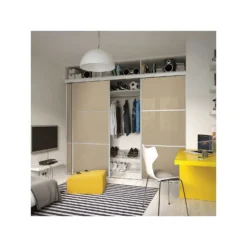 Linear Sliding Wardrobe Door 3 Panel Arctic White Glass With Silver Frame (W)610mm