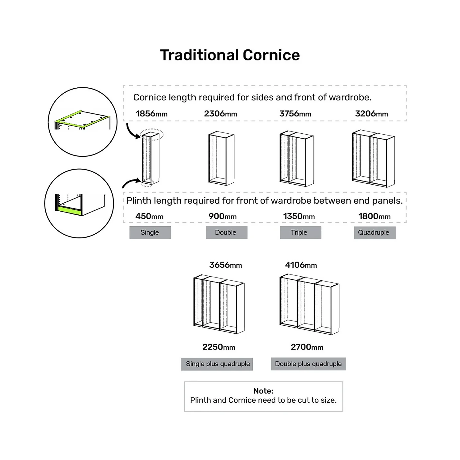 Take your wardrobes to the next level by creating that fitted bedroom look with our House Beautiful coordinating traditional cornice. This provides the finishing touch to tie in with your chosen door finish and is perfect when partnered with the coordinating plinth and end panels (available separately) to complete the look.