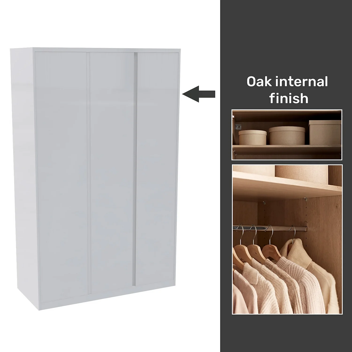 House Beautiful Escape Fitted Look Triple Wardrobe, Oak Effect Carcass – Gloss White Handleless Doors (W) 1390mm X (H) 2226mm