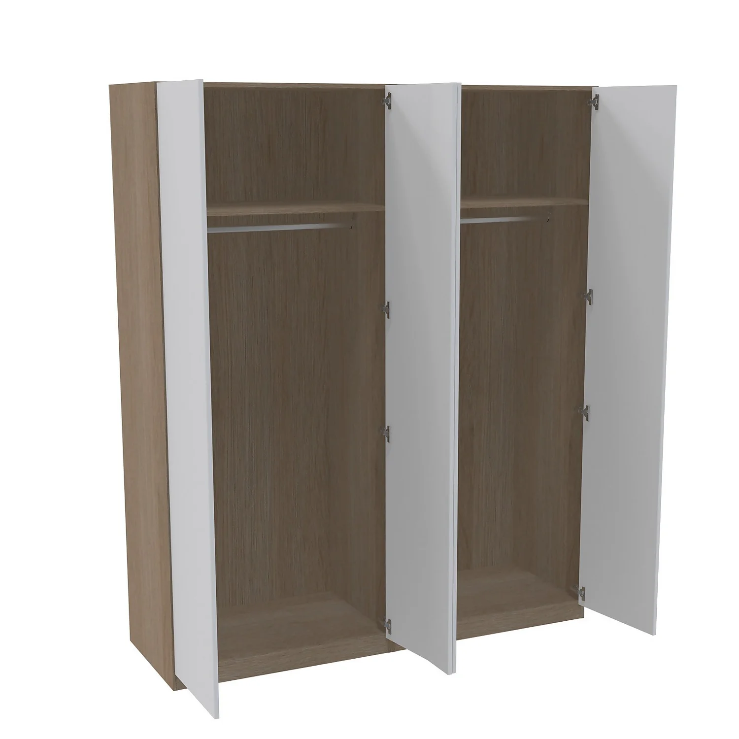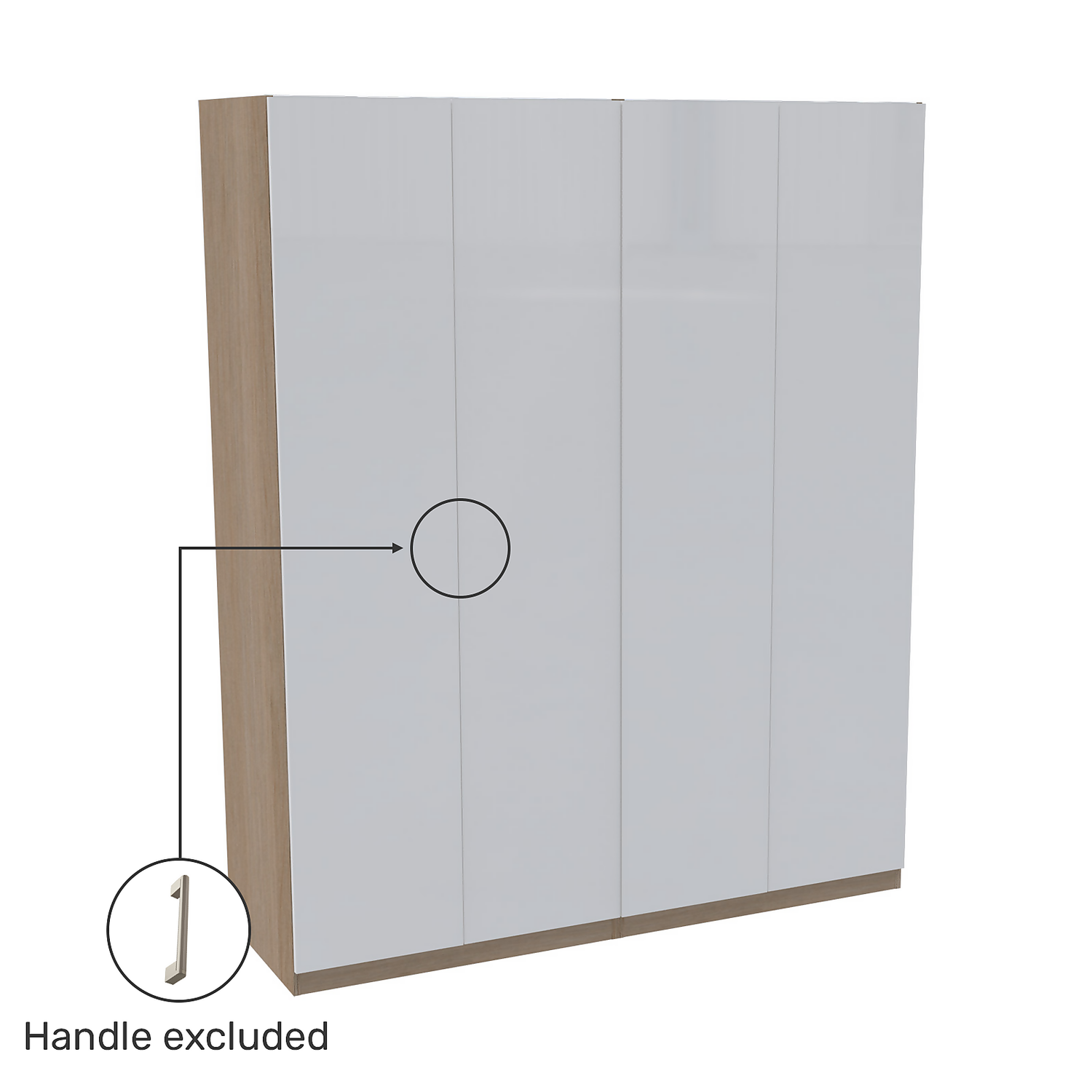 House Beautiful Honest Quad Wardrobe, Oak Effect Carcass – Gloss White Slab Doors (W) 1800mm X (H) 2196mm