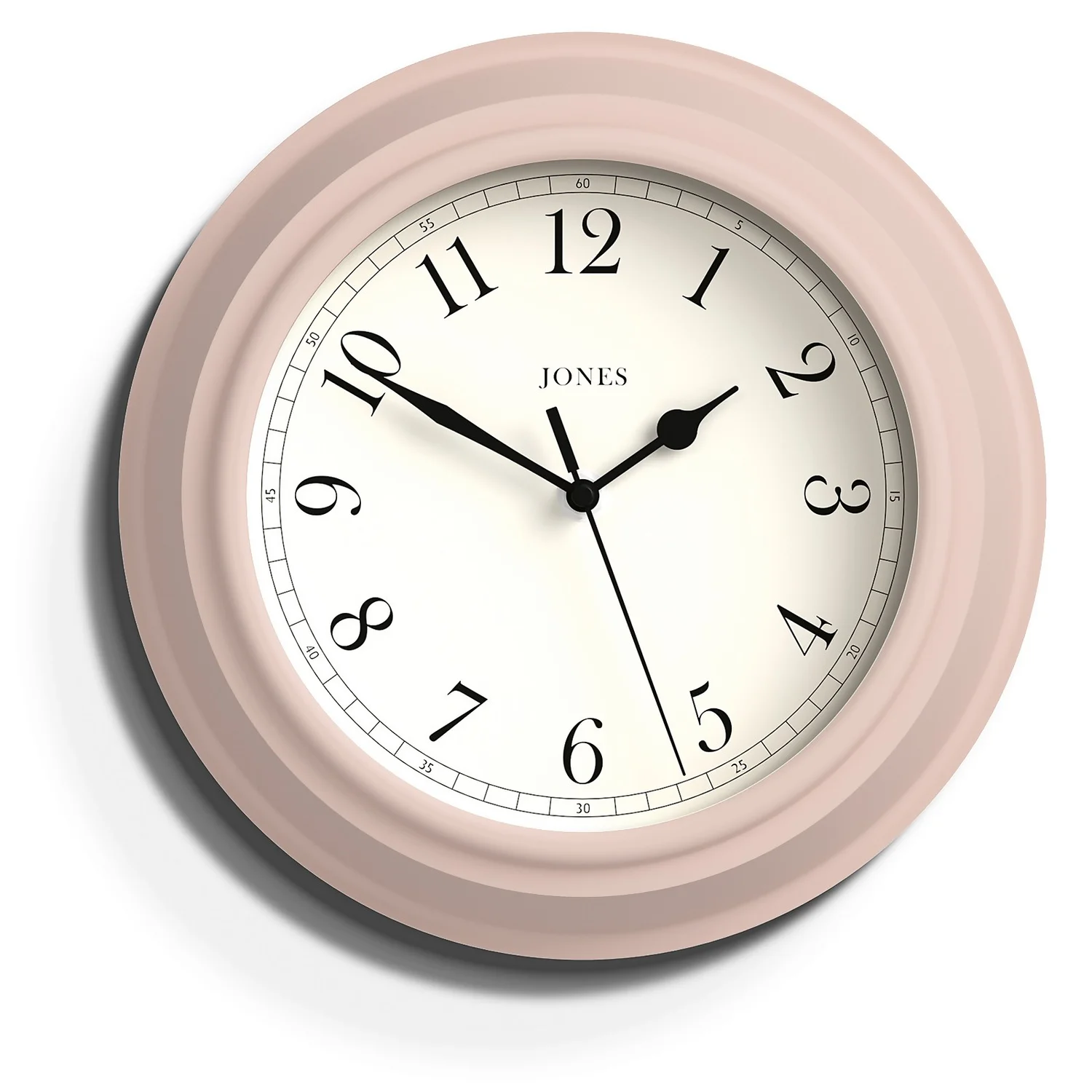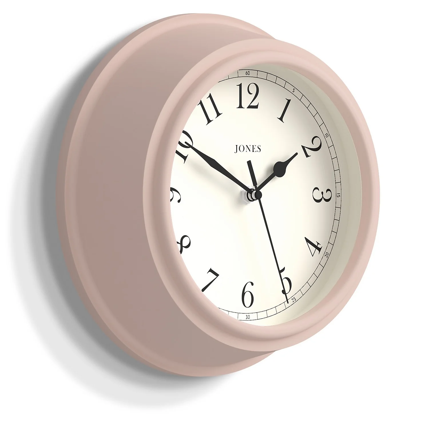 - The Jones Can clock is a compact wall clock, featuring an arabic dial and finished in ‘Pink Blush’.