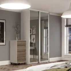 Shaker 4 Door Sliding Wardrobe Kit Dove Grey Panel / Mirror With Dove Grey Frame (W)2290 X (H)2260mm