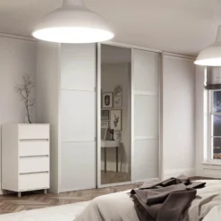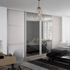 Shaker 3 Door Sliding Wardrobe Kit White Panel / Mirror With White Frame (W)2136 X (H)2260mm
