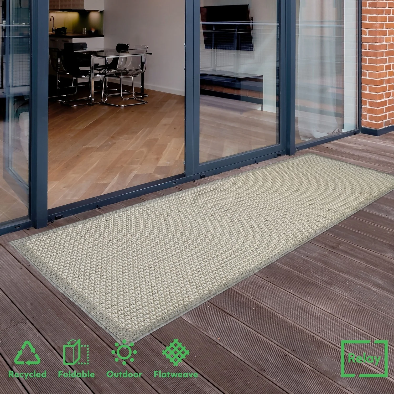 Relay Recycled Indoor/Outdoor Rug – Grey Border – 60x230cm