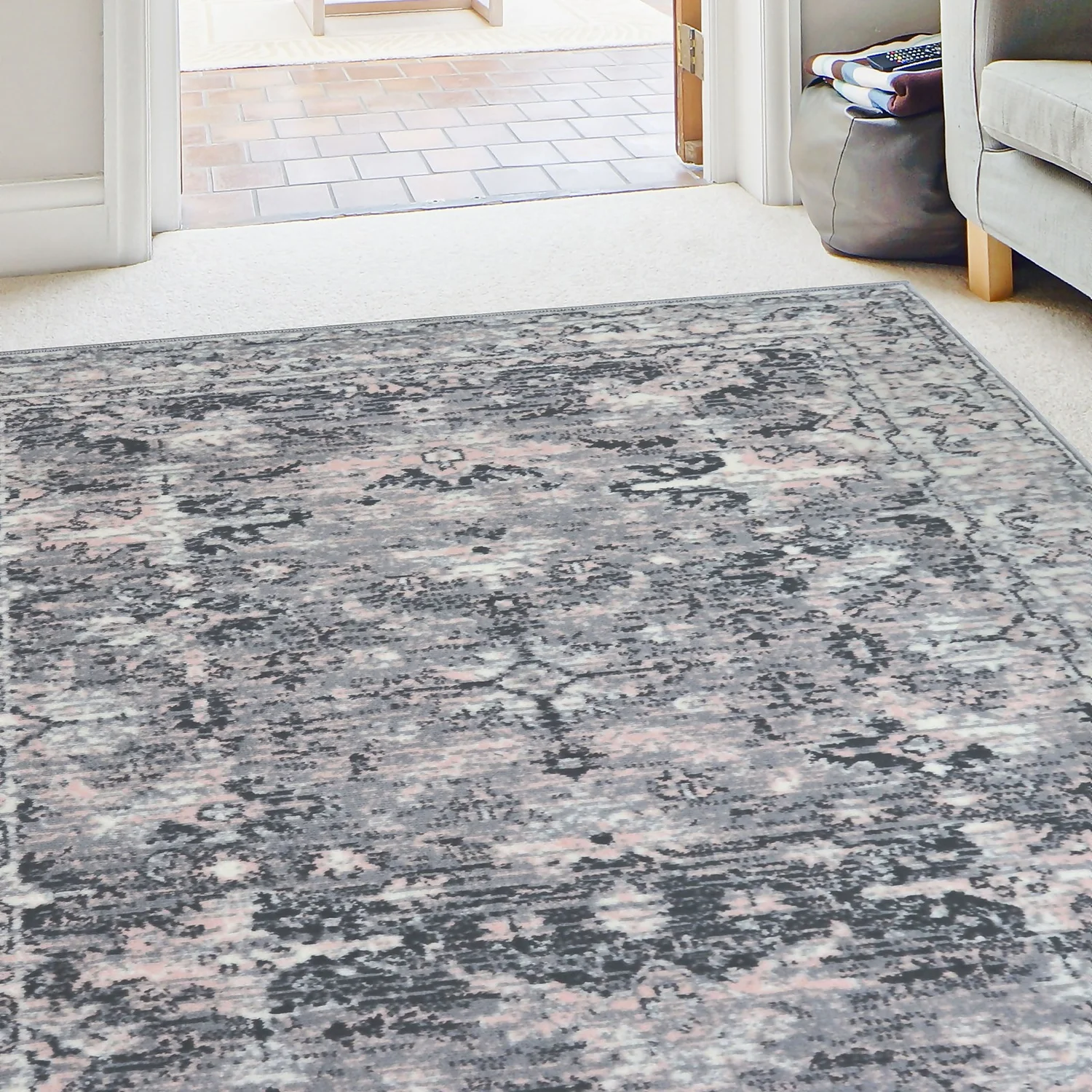 Traditional Rug – Grey & Pink – 160x230cm